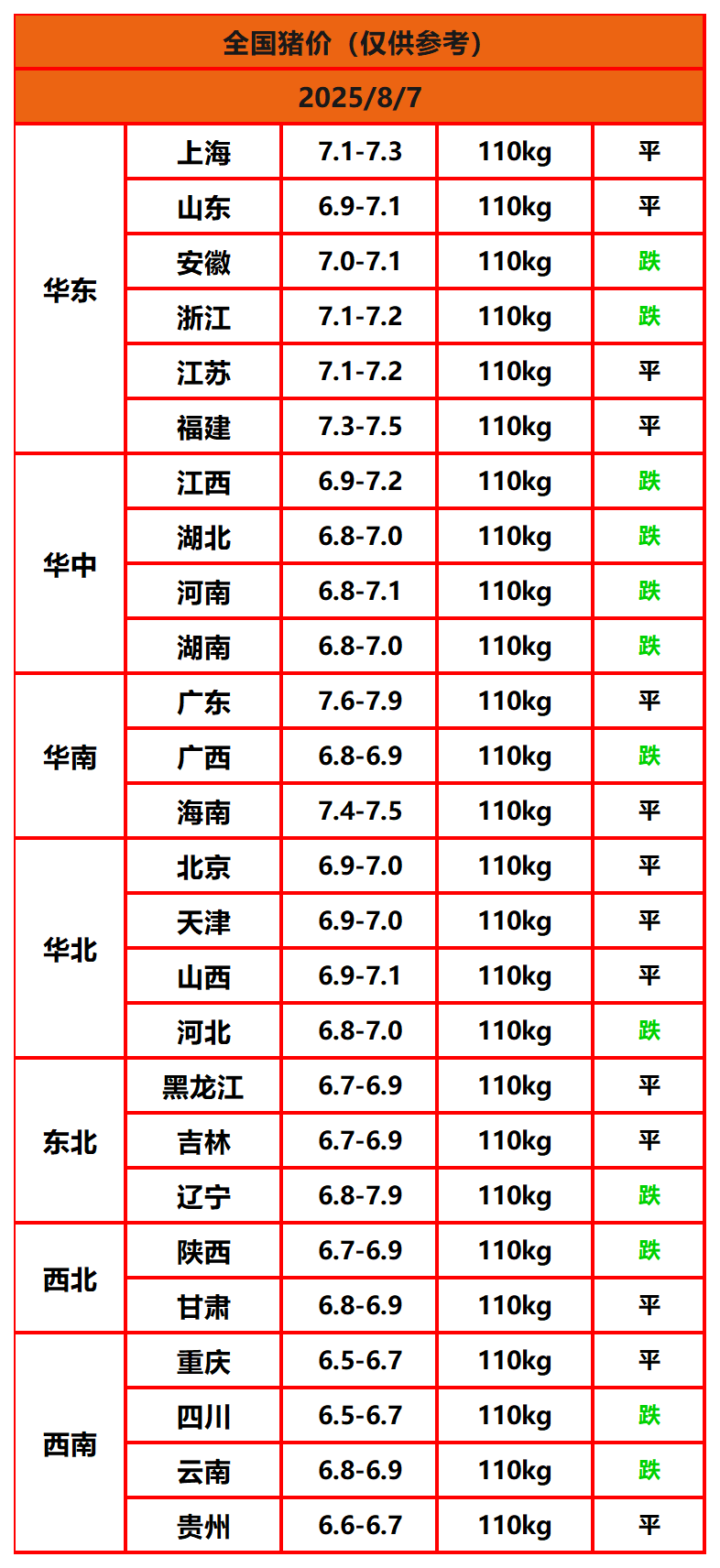 2025年9月28日猪价,今日全国猪价行情走势:8涨8平10跌。免责声明:部分资料来源于网络收集,以供给大家学习、交流为... 【详情+】