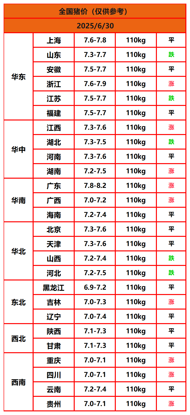 2025年6月30日猪价,今日全国猪价行情走势:9涨12平5跌。